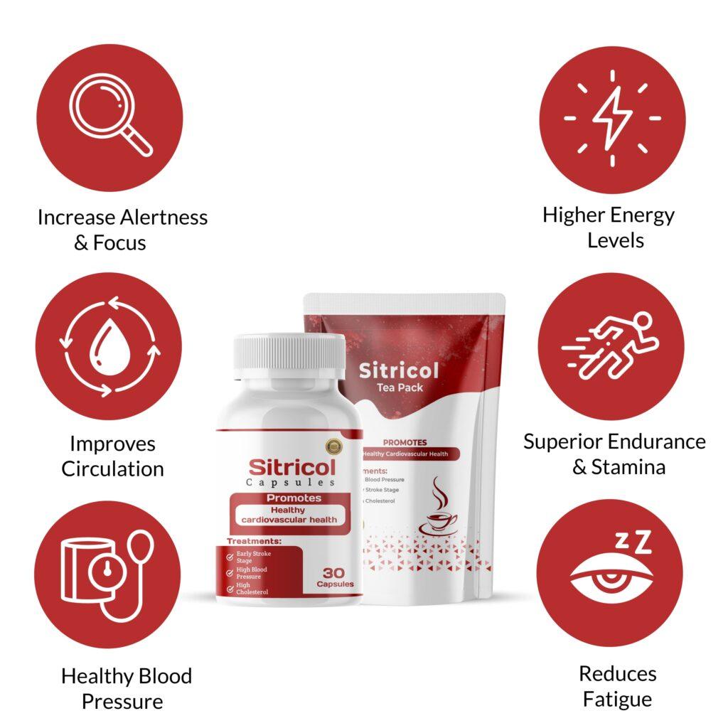HEALS YOUR ENDOTHELIUM TO PRODUCE NITRIC OXIDE: Sitricol tea and capsule helps boost a healthy endothelium to produce the right amount of Nitric Oxide your body needs naturally. This helps relax your blood vessels and prevent blood clots.