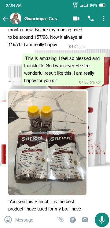 I wish I bought sitricol 7 months ago when I first saw it on facebook. I thought it was one of those bp product online that dont work. If you come to my house, you would see all the empty bottles of different bp products that I had bought from different online vendors. None of them worked for me. I wasn’t ready to waste another money so I ignored sitricol when it on facebook. Not knowing that I was making a very very big mistake that almost cost me my life.